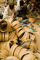 The next day we got a pick-up by a new Land cruiser with the very cool driver Suleiman - owner of a transportation company. We literally flew with a 150 km/h and arrived pretty quickly to Bobo. He spoke English, had gone to Macedonia and was one of the few locals who knew about Bulgaria. When we arrived he asked us whether we had where to stay and invited us into his house. It turned out really great and luxurious house. There were LCDs, leather seats and even hot water in the bathroom. We had't seen hot water from Spain. He showed us the room and disappeared. We did not see anymore. We went for a walk around Bobo - the second largest city in Burkina. It was much smaller and a very nice town - with small shops for souvenirs, many musicians and artists. The next day we woke up to find that Suleiman was gone and we could not even thank him for his goodness to us. We left him a thank-you note and continued for Banfora (the way to Cote d'Ivoire). After an hour of waiting and searching for a suitable place we got picked up by a local Mercedes with retailers of cosmetic goods. They tried to persuade us to buy creams and perfumes, and then they wanted us to become representatives and to sell them. We explained to them that we did not want any of these things. However, they didn't stop. It was the most tedious hitchhike so far. We descended in their village with a great relief and continued hitching to Banfora. The road was pretty empty and the only car that went through half an hour later stopped. The SUV was driven by white people who had business with karite (shea) – a special tree that is made into various cosmetic oils, well known in these latitudes. They left us straight in Banfora and there amongst the madness of insisting guides and all kinds of offers we managed to rent a moped for 3 days.